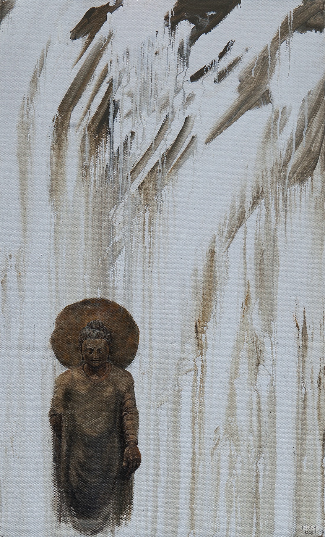 Trong loạt tranh này, Trần Nhật Thăng liên tục mang đến những kích hoạt tĩnh lặng thông qua nhiều hình ảnh vừa quen thuộc vừa sinh động. Ấy là hình ảnh Đức Phật tọa thiền dưới gốc cây bồ đề, lúc nhà tu ngắm nhìn dáng hình thanh thản của Phật tại thời điểm Ngài “nhập diệt”, khi Ngài bước đi hay ngồi trong tư thế ung dung nghiêm trang… Bên cạnh hình ảnh Phật luôn là những biến thiên liên tục của đất trời, hàm ý sự hiện diện trong sáng trải khắp mọi nơi, dù không gian ấy ngập tràn “bão tố”.
