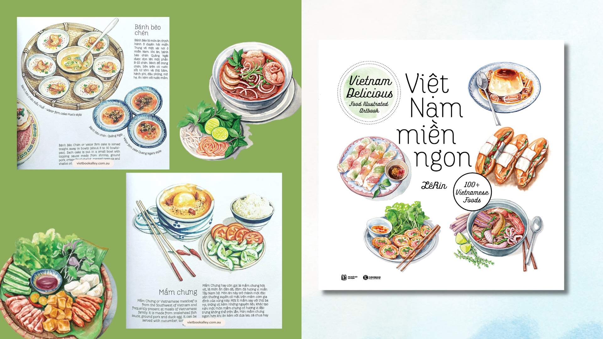 Ra mắt năm 2022 bởi NXB Lao Động Xã Hội, Việt Nam miền ngon đánh dấu bước khởi đầu trong hành trình ghi chép ẩm thực Việt của Lê Rin. Khác với những cuốn sách văn hoá ẩm thực thông thường, đây là tác phẩm song ngữ Việt – Anh kết hợp khéo léo giữa nghệ thuật minh họa và kiến thức ẩm thực. Từ phở Bắc Hà thanh thanh đậm đà, bánh xèo miền Trung giòn rụm vàng ươm, đến cơm tấm Sài Gòn thơm lừng sườn nướng đều được tái hiện qua nét màu nước tinh tế, kèm theo công thức chế biến đơn giản dễ áp dụng.