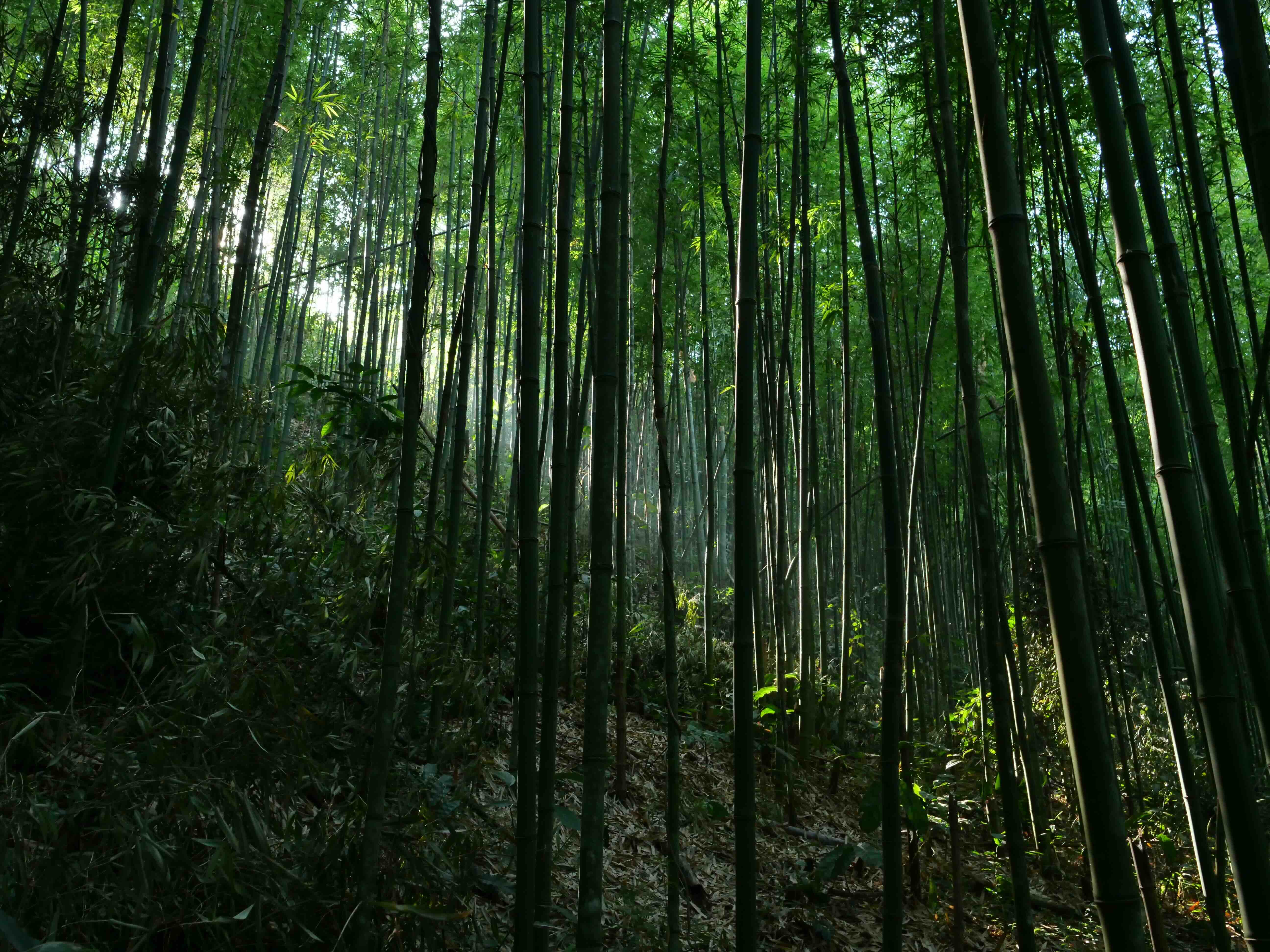 Dấu ấn của thế giới ồn ào đã tan biến. Xung quanh là màu xanh và âm thanh của những tán lá, tiếng chim vọng mình theo gió. Trên cao, phía bầu trời, lá trúc xếp thành tầng lớp, chỉ chừa lối nhỏ cho gió, nắng đi qua. Gió len mình qua kẽ lá, xào xạc bài hát của khu rừng. Nắng tìm đường về với đất. Nắng chiếu lên gốc tre già cỗi. Âm thanh và ánh sáng cuộn mình trong màu xanh, dịu dàng gửi lời chào đến người lữ khách.