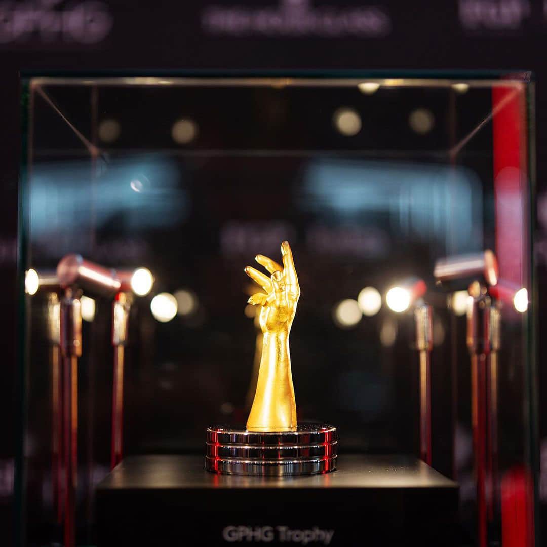 Ở Lễ trao giải, chủ nhân của những đồng hồ đoạt giải sẽ vinh dự nhận được chiếc cúp GPHG cao quý nhất, được chế tác từ đồng mạ vàng mang hình bàn tay lấy cảm hứng từ bức tranh bích họa tại nhà nguyện Sistine của Michelangelo, nơi Chúa truyền sự sống cho Adam qua cái chạm tay. Đây cũng chính là thông điệp tôn vinh tài năng của con người: những đôi tay nghệ nhân sẽ không ngừng tạo nên kiệt tác trong lĩnh vực chế tác đồng hồ.