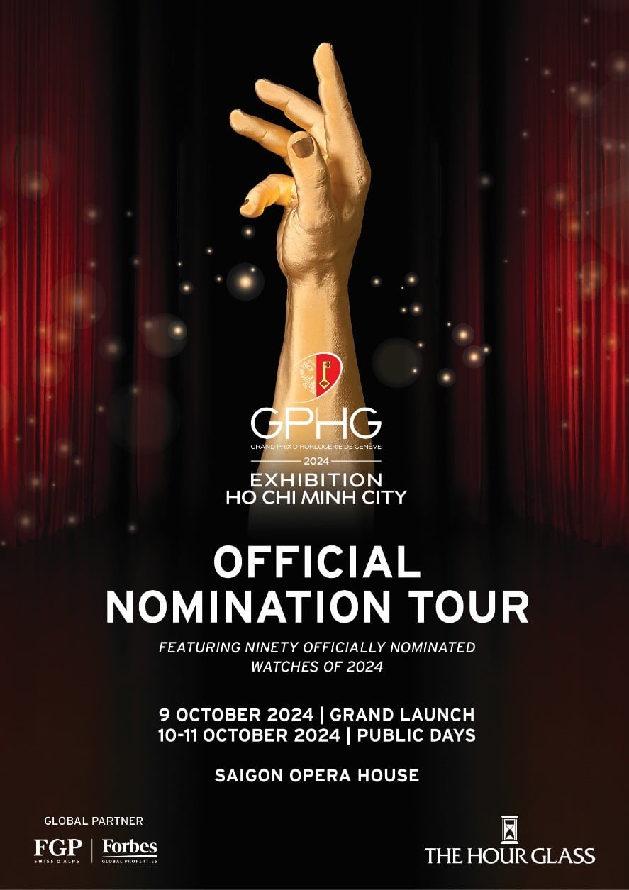 Lần đầu tiên những người yêu đồng hồ ở Việt Nam được ngắm tận mắt các mẫu đồng hồ xuất sắc nhất thế giới 2024. Đây là những đề cử cho Grand Prix d’Horlogerie de Genève (GPHG), giải thưởng được ví von như Oscars của thế giới đồng hồ. Trong 3 ngày, từ ngày 09 -11/10/2024 tại Nhà hát lớn TP.Hồ Chí Minh, khoảng 90 kiệt tác đồng hồ sẽ được giới thiệu, phô diễn trọn vẹn đỉnh cao kỹ nghệ đồng hồ và vẻ đẹp tinh xảo đến hoàn hảo. Triển lãm do The Hour Glass, đại diện phân phối độc quyền các nhãn đồng hồ xa xỉ ở Việt Nam tổ chức.