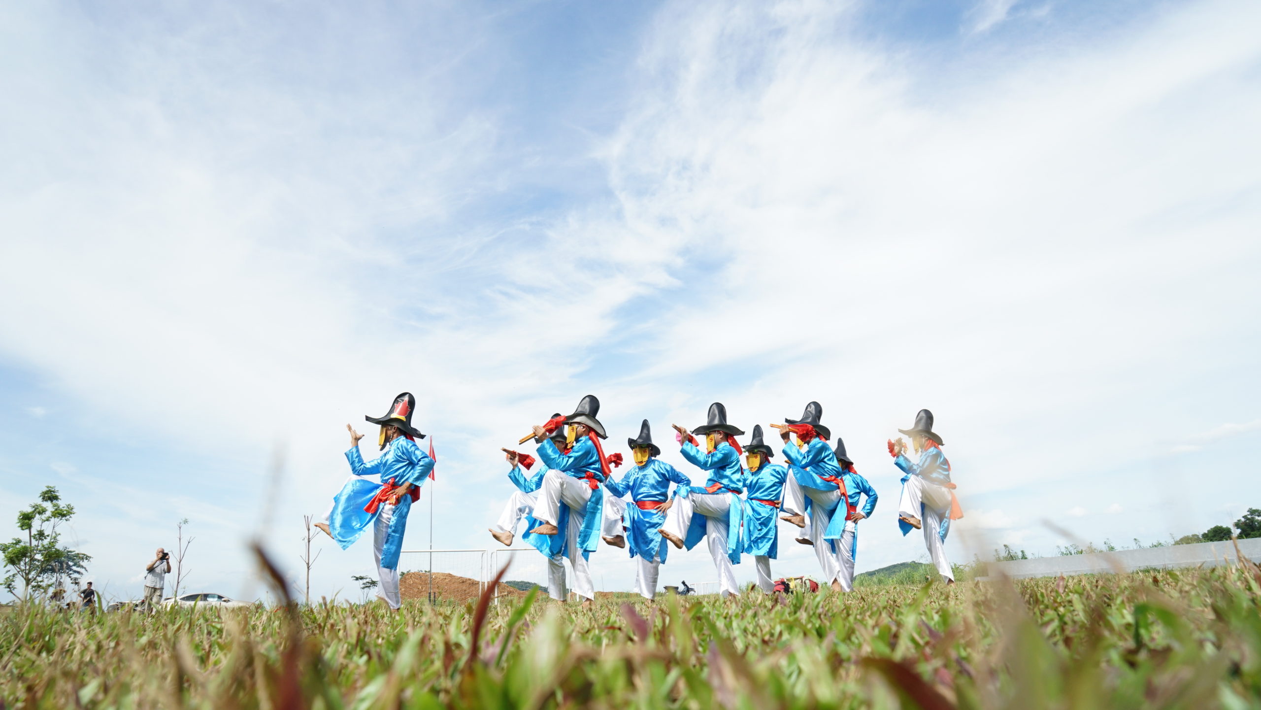 Trong ngày hội mừng chiến thắng, các nước lân bang đem lễ vật và điệu múa đặc sắc của nước họ đến để chúc mừng nhà vua đất Việt: Ai Lao (nước Lào), Ngô Quốc (bộ tộc của đảo Hải Nam Trung Quốc), Hòa Lan (một bộ tộc Cao Ly ở Triều Tiên), Chiêm Thành (Chămpa ở phía Nam), Lục Hồn Nhung (bộ tộc Lục Hồn ở phía Bắc). Từ đó, vua ban cho nhân dân làng Xuân Phả 5 điệu múa của năm nước trên, gọi là Ngũ Quốc Lân Bang đồ tiến cống.