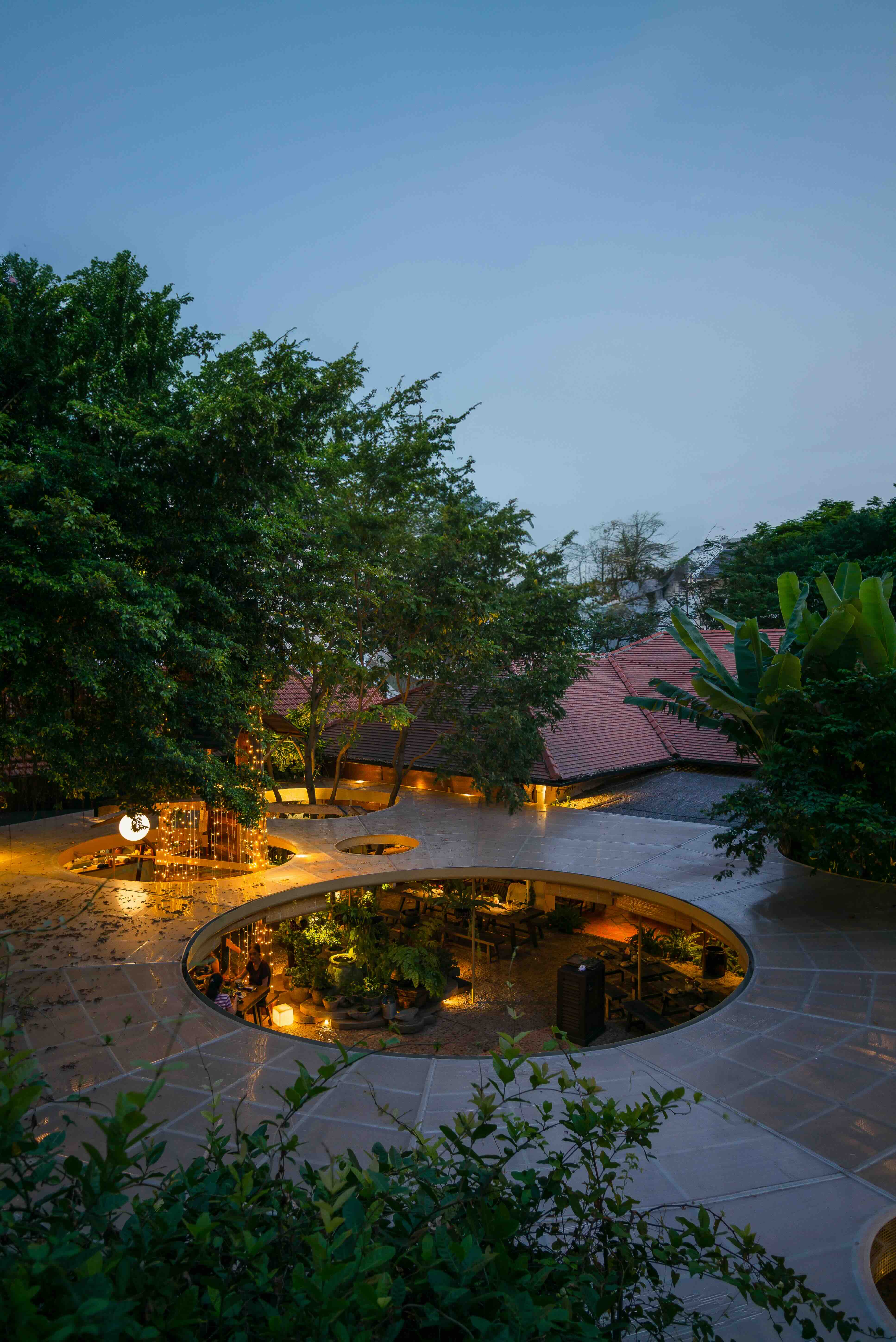 Tại Thảo Điền, một biệt thự cũ khác lại mở ra khu vườn bí mật. Tường thô, đá mộc, gốm nung, gỗ cũ giao hòa cùng đường nét đương đại, tạo một không gian vừa cá tính, vừa lãng mạn. Trong khuôn viên, khoảng xanh “Sân Trăng” là một nhịp lành kết nối con người với đất trời, như ánh trăng ngàn đời tĩnh tại và dịu dàng.