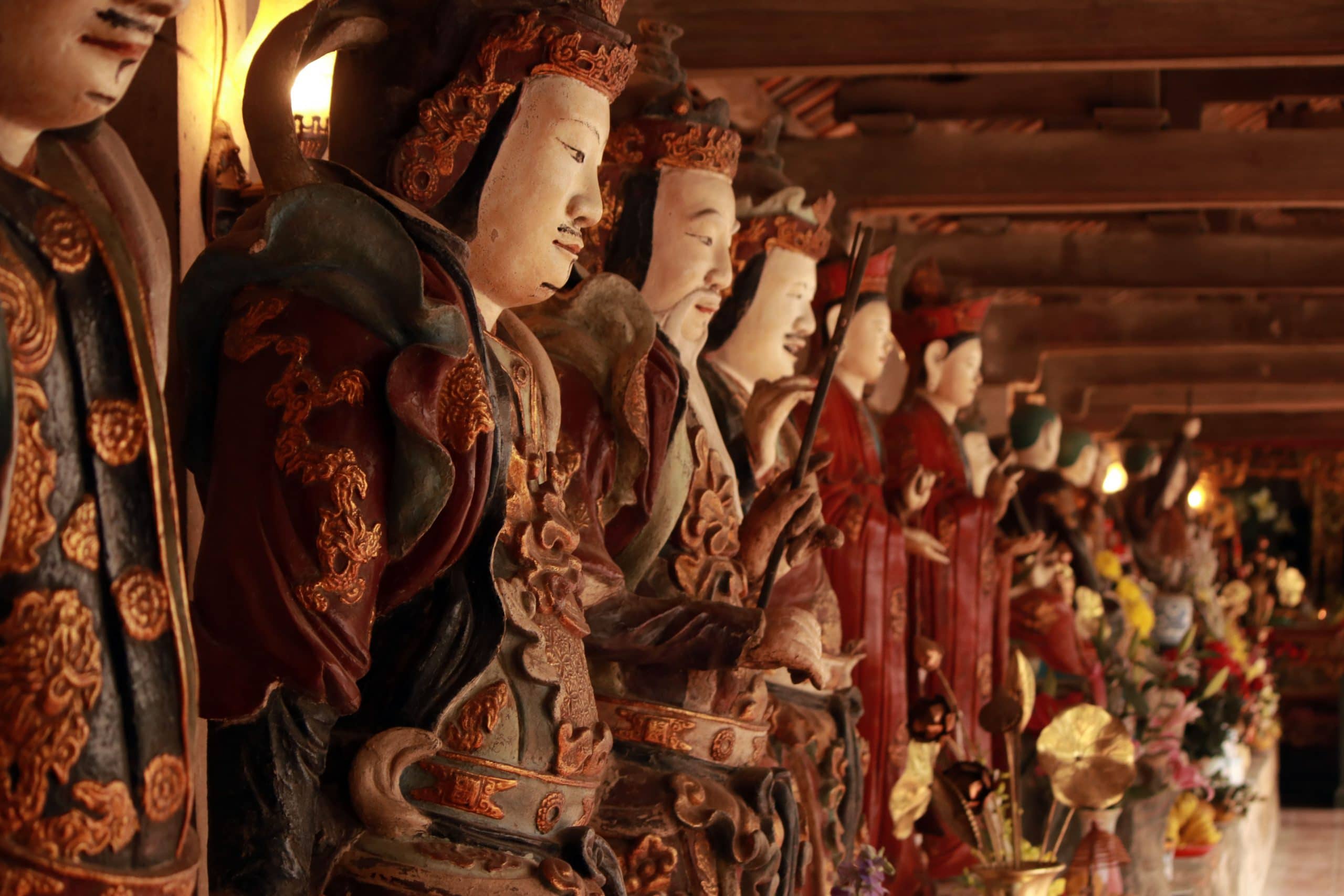 Những không gian chuyển tiếp như hàng hiên, cửa vào, bậc thềm… chính là nơi phô diễn những tài năng chạm khắc trên gỗ hay đá của người nghệ nhân xưa. Các bức chạm khắc ở cốn, kẻ chuyền, bảy hiên (những thành phần kiến trúc phô bày dưới mái), những linh vật ở lối vào, kết hợp hiệu ứng ánh sáng gián tiếp toát lên vẻ đẹp mộc mạc, huyền ảo.