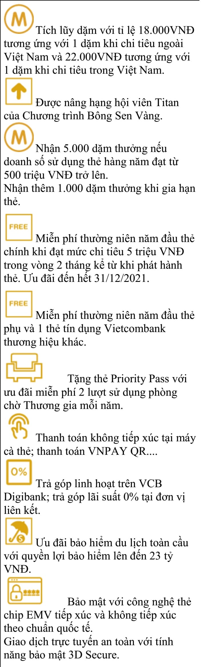 Vui lòng tham khảo vietcombank.com.vn để biết thêm chi tiết về ưu đãi của thẻ.