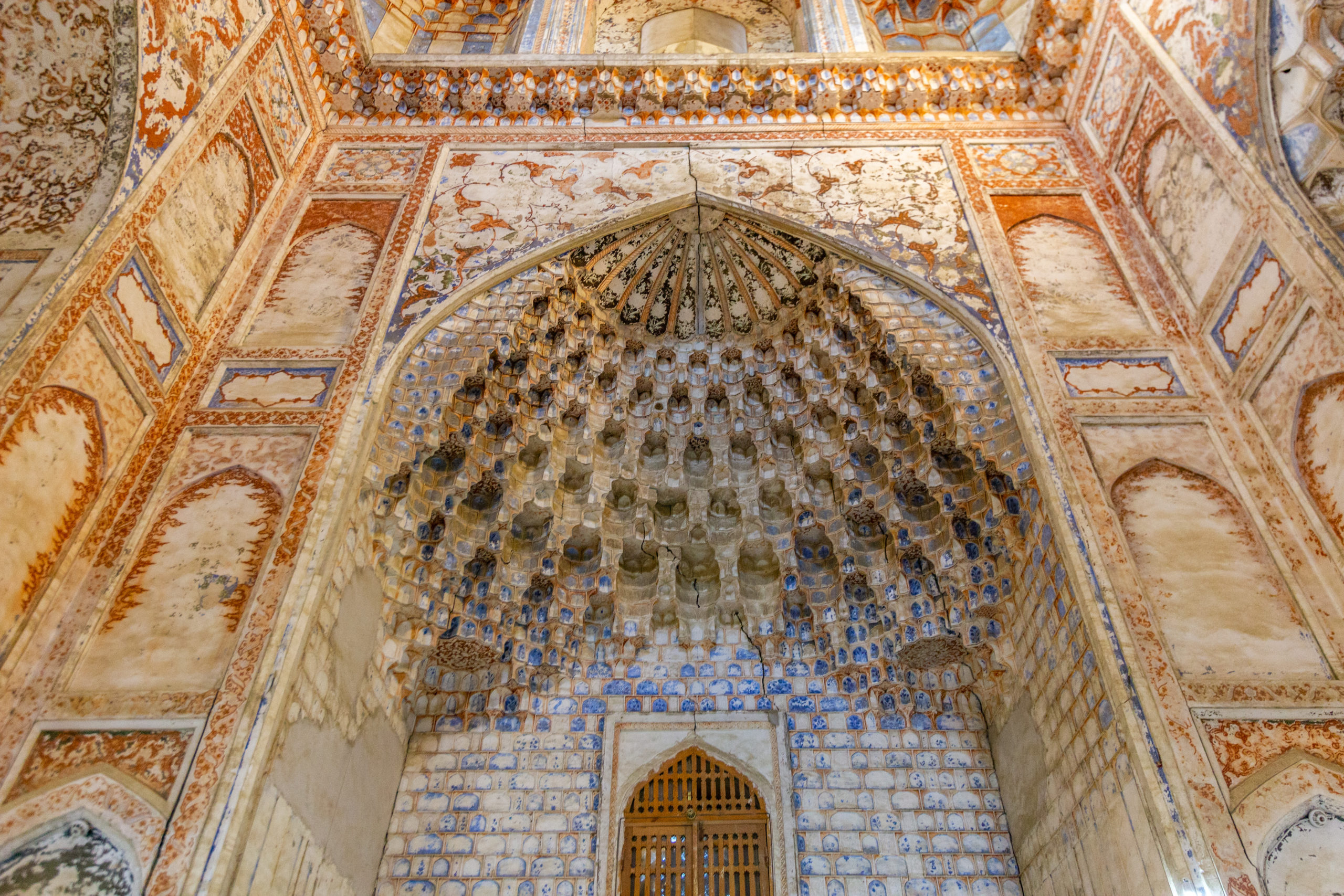 Nổi bật nhất là quảng trường Po-i-Kalyan gồm học viện Hồi giáo Miri-Arab, tháp và quảng trường Kalyan. Tháp Kalyan được xây dựng hoàn toàn bằng gạch nung vào thế kỷ 12, cao tới 48m và là tháp cao nhất Trung Á thời đó. Nơi này còn được sử dụng như ngọn hải đăng dẫn đường cho những đoàn thương nhân đi vào thành phố Bukhara. Nhưng công trình khiến tôi ấn tượng nhất phải kể đến học viện Hồi giáo Abdulaziz Khan được xây dựng vào giữa thế kỷ 17. Đây là công trình đánh dấu bước tiến vượt bậc của kiến trúc Trung Á. Cổng vào học viện được trang trí lộng lẫy với màu sắc tươi sáng. Bên trong, các bức tường và trần nhà của học viện là đỉnh cao của hầu hết tất cả các kỹ thuật trang trí được sử dụng trong thời gian đó: phù điêu, chạm khắc đá cẩm thạch, khảm gạch, vẽ tranh tường và mạ vàng.