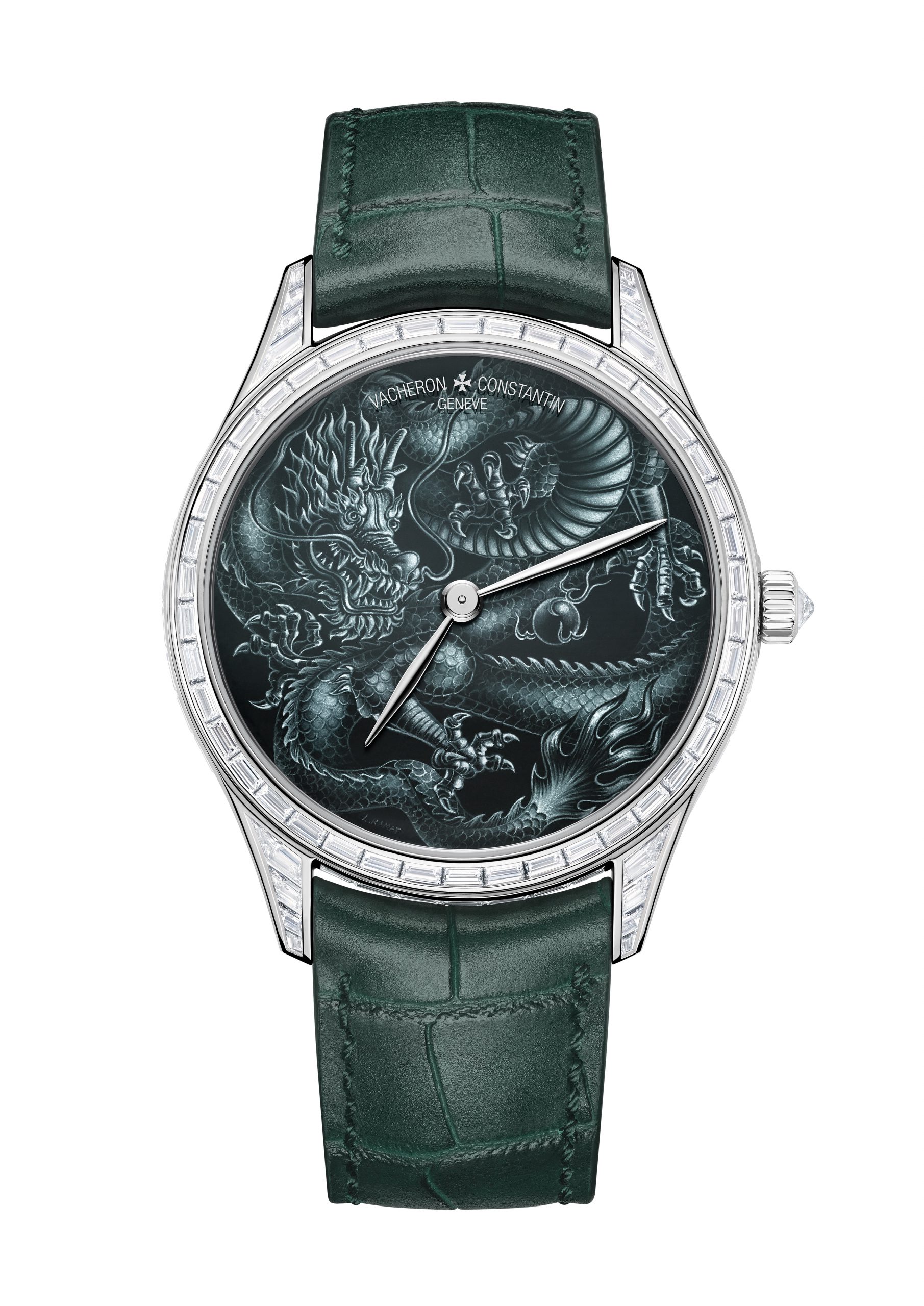 Để tri ân đất nước này, đồng hồ Les Cabinotiers Grisaille High Jewellery – Dragon có mặt số tráng men grisaille màu xanh lá cây, chiếc đầu tiên dành cho Vacheron Constantin và phông nền nguyên bản cho con rồng hoàng gia năm móng huyền thoại. Bộ máy Calibre 1120, một trong những bộ máy tự lên dây mỏng nhất từng được sản xuất, trang bị cho chiếc đồng hồ có một không hai này những viên kim cương cắt baguette.