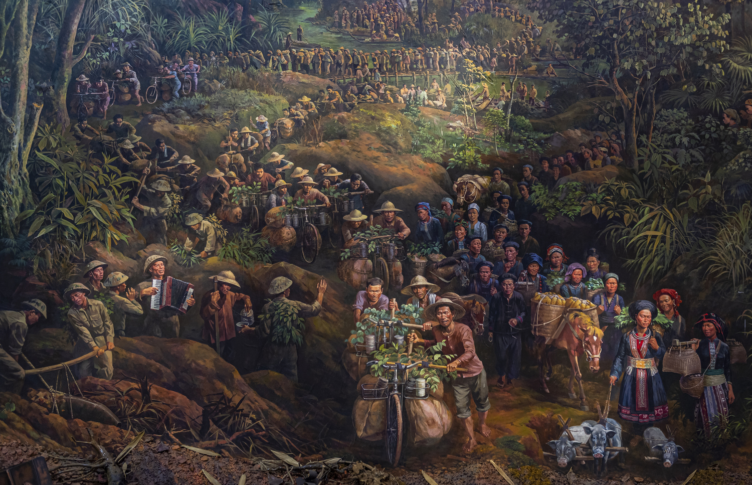 Ý tưởng về bức tranh toàn cảnh chiến dịch huyền thoại đã hình thành ngay từ khi xây dựng bảo tàng Chiến thắng lịch sử Điện Biên Phủ. Tuy nhiên, việc triển khai thực hiện công trình nghệ thuật ấy lại không hề đơn giản. Các chuyên gia nước ngoài được mời tới, kể cả chuyên gia đến từ nước Nga – một cường quốc về tranh panorama – đều không tìm được tiếng nói chung. “Người nước ngoài sao thẩm thấu đủ đầy lịch sử của chúng ta, họ không cảm hết, từ màu đất, không gian, thời gian, những điều đã thấm đẫm trong mỗi người Việt Nam về lịch sử hào hùng của dân tộc”, ông Nguyễn Văn Mạc trầm mặc. Mất 9 năm cho dự án, từ bức phác thảo thứ nhất năm 2013, đến lần phác thảo thứ 2 cũng thực hiện dài cả 100m, mà chưa biết có được lựa chọn hay không. Toàn bộ ê kíp đã vào cuộc bằng tình yêu khó đong đếm với Điện Biên và niềm tự hào về truyền thống lịch sử của dân tộc. Nhóm nghệ sĩ trẻ đều ý thức đang được làm công việc để đời, được trải nghiệm lịch sử đất nước theo cách thức đặc biệt, hiếm có. Năm 2019 là dấu mốc khởi công, lại gặp ngay đại dịch Covid -19 sau đó, đối diện với nhiều phức tạp, khó khăn, may mắn bức tranh vẫn hoàn thành đúng tiến độ và được đón nhận hơn cả mong đợi, trở thành sản phẩm du lịch hấp dẫn của tỉnh Điện Biên.