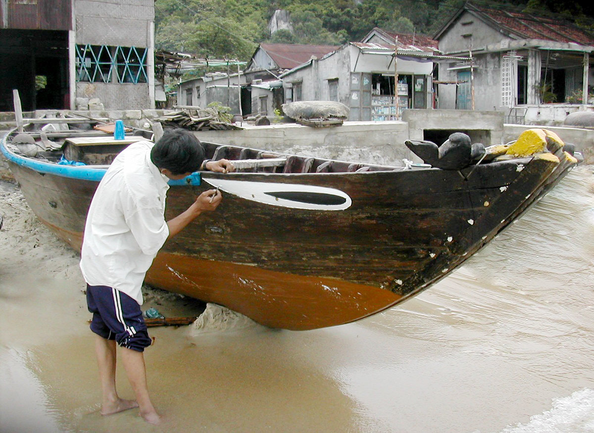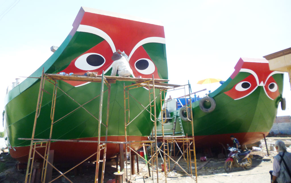 Công đoạn vẽ mắt được thực hiện ngay khi ghe vừa đóng xong phần thân. Và quy trình vẽ mắt ghe cũng lắm công phu, đòi hỏi không chỉ người thợ vẽ phải là người khéo léo, giàu kinh nghiệm, am hiểu về ghe mà còn cả nghi thức tín ngưỡng được gọi là lễ “khai quang điểm nhãn” cho con thuyền mới.