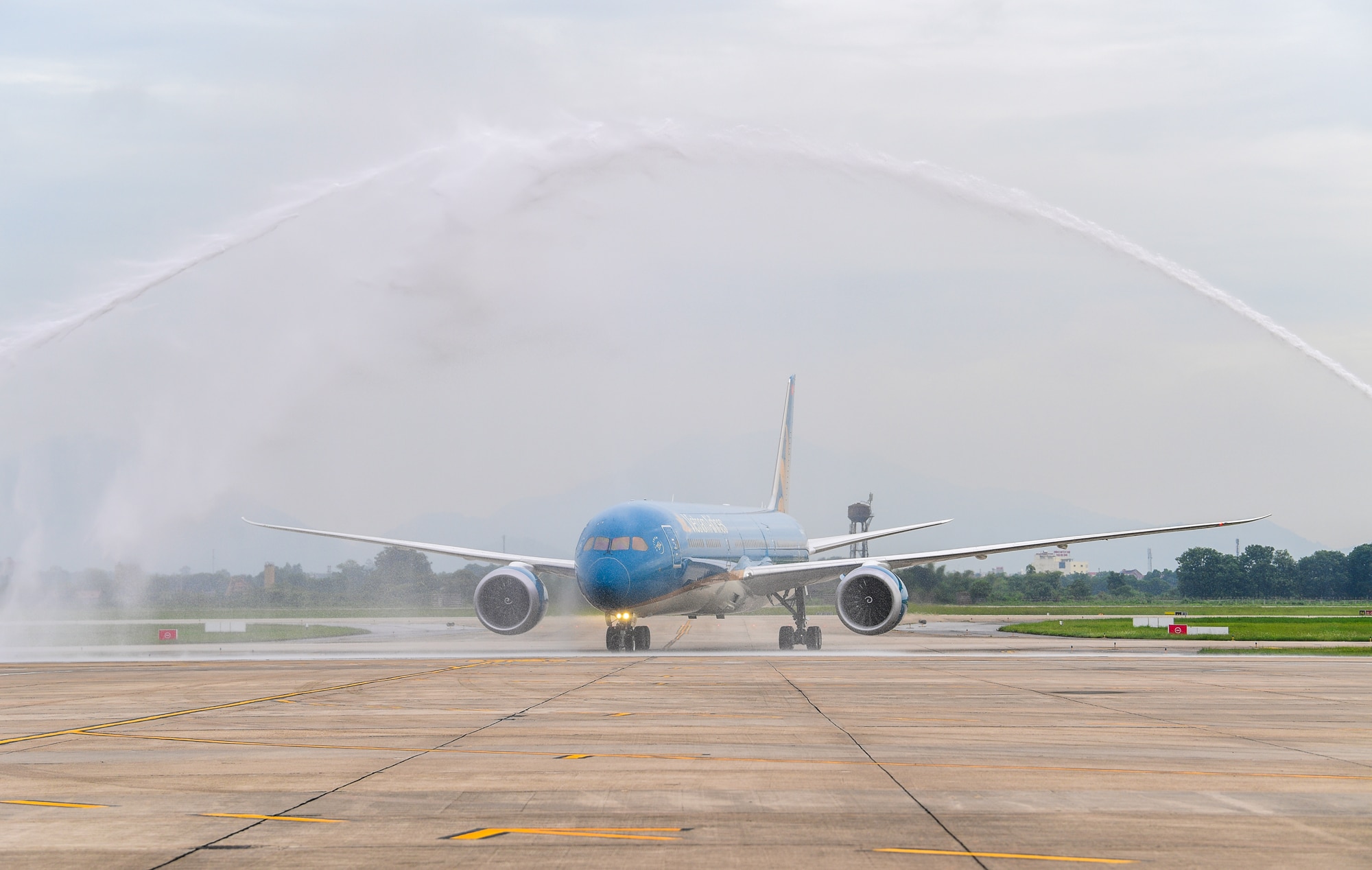 Siêu máy bay bay thân rộng Boeing 787-10 của Vietnam Airlines vừa chính thức hạ cánh tại sân bay Nội Bài. Đây là chiếc Boeing 787-10 thứ 5 và là máy bay thân rộng thứ 30 gia nhập đội bay của Hãng hàng không Quốc gia. Sự kiện tiếp nhận máy bay được tổ chức long trọng tại Nội Bài với những nghi thức đặc biệt.