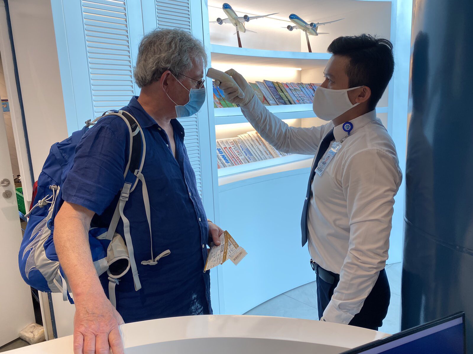 Hành khách được đo thân nhiệt trước khi vào phòng chờ