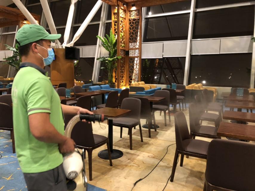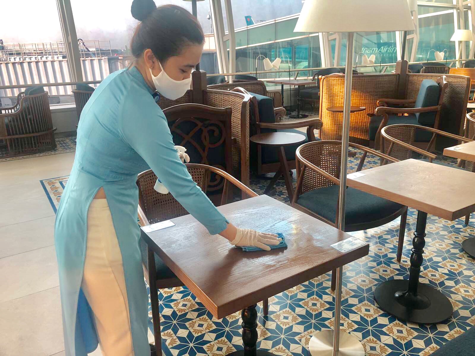 Hằng ngày, toàn bộ phòng chờ được phun khử khuẩn bằng hóa chất được chấp nhận sử dụng trên tàu bay