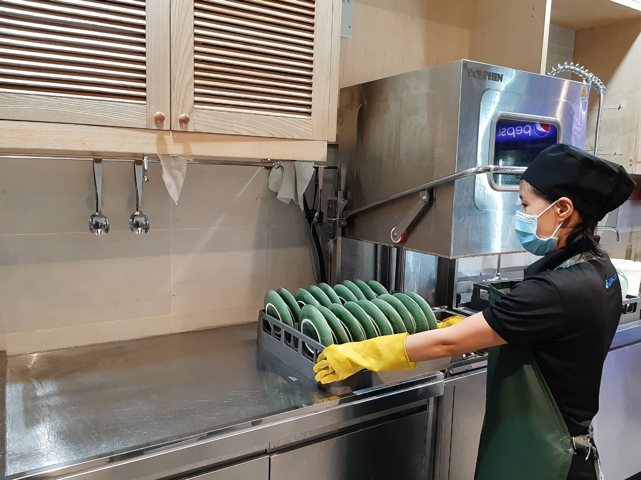 Tất cả đồ dùng phục vụ ăn uống đều được rửa sạch, sấy khô và tiệt trùng theo quy trình tiêu chuẩn