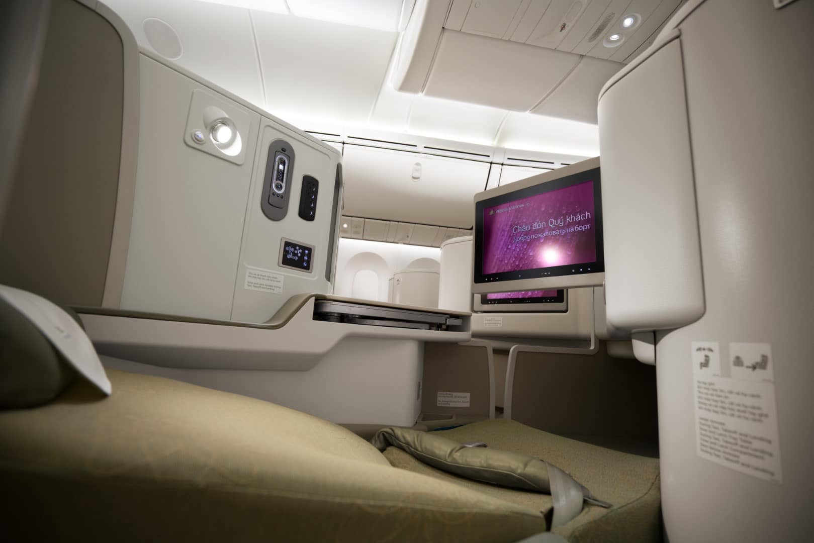 Điểm nhấn của dòng tàu bay này là khoang Thương gia với ghế ngồi ngả phẳng 180 độ