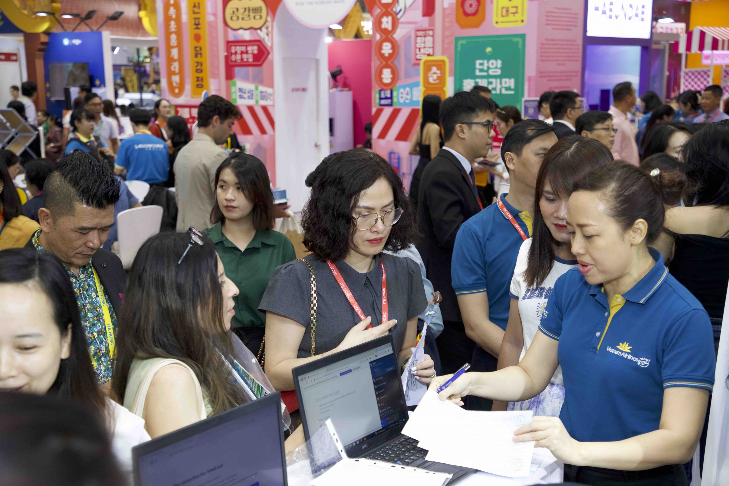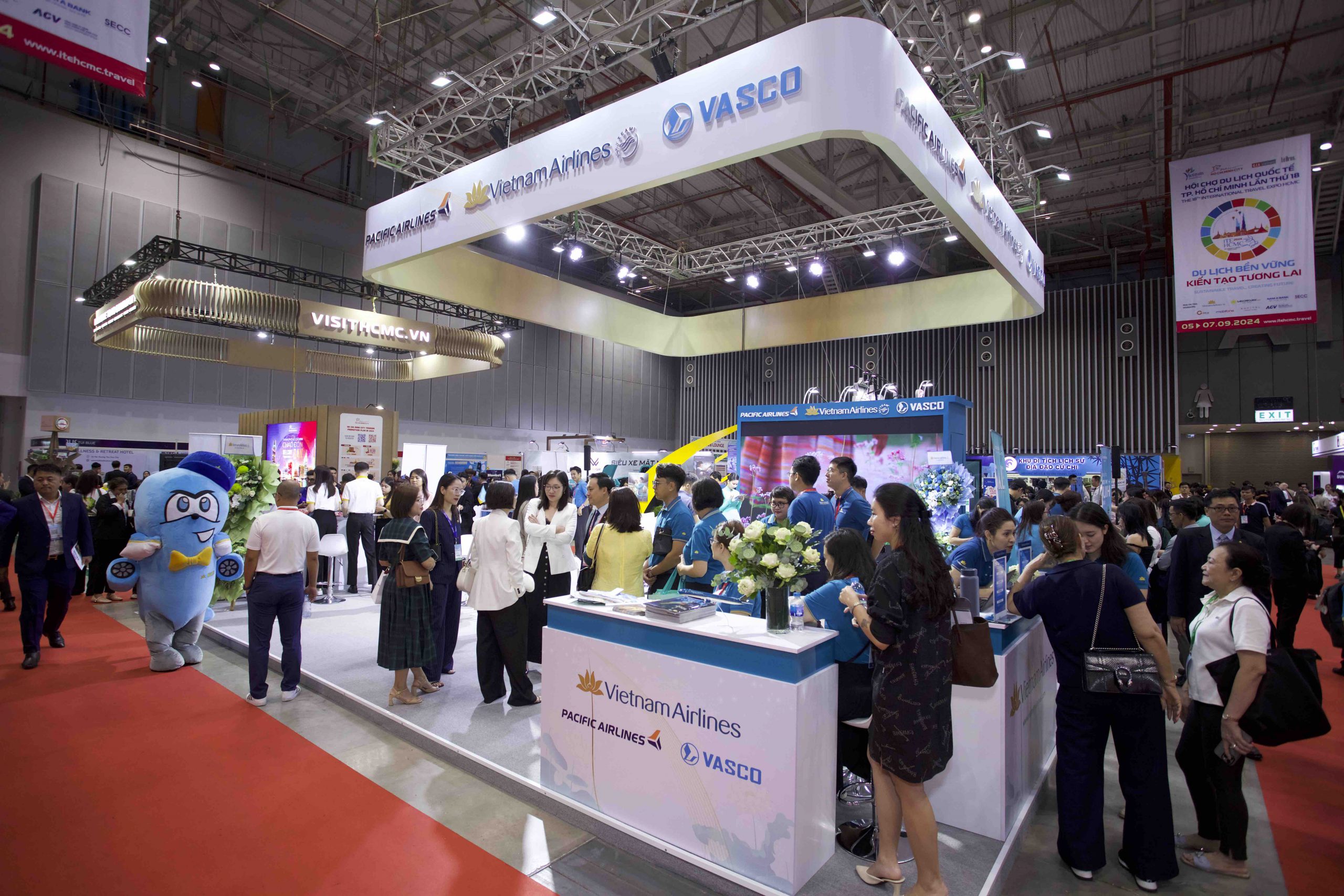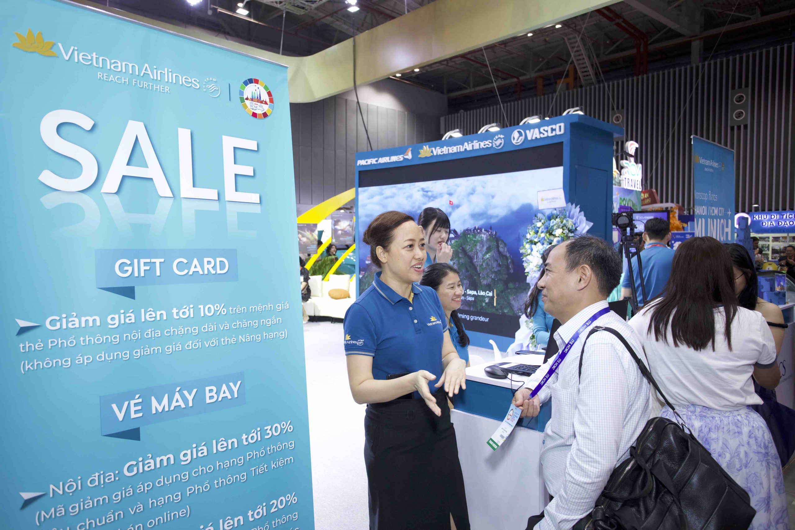 Gian hàng Vietnam Airlines tại Hội chợ Du lịch quốc tế TP.HCM 2024 thu hút đông đảo khách tham quan với không gian trải nghiệm ấn tượng, ưu đãi hấp dẫn cùng nhiều quà tặng độc đáo.