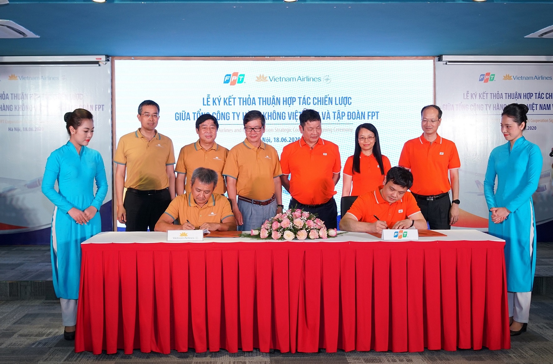 Hà Nội, ngày 19 tháng 6 năm 2020 – Tổng công ty Hàng không Việt Nam (Vietnam Airlines) và Công ty Cổ phần FPT (FPT) đã tiến hành ký kết thỏa thuận hợp tác chiến lược giai đoạn 3 năm 2020-2023 nhằm tận dụng thế mạnh của mỗi bên để cùng nhau phát triển và bứt phá.