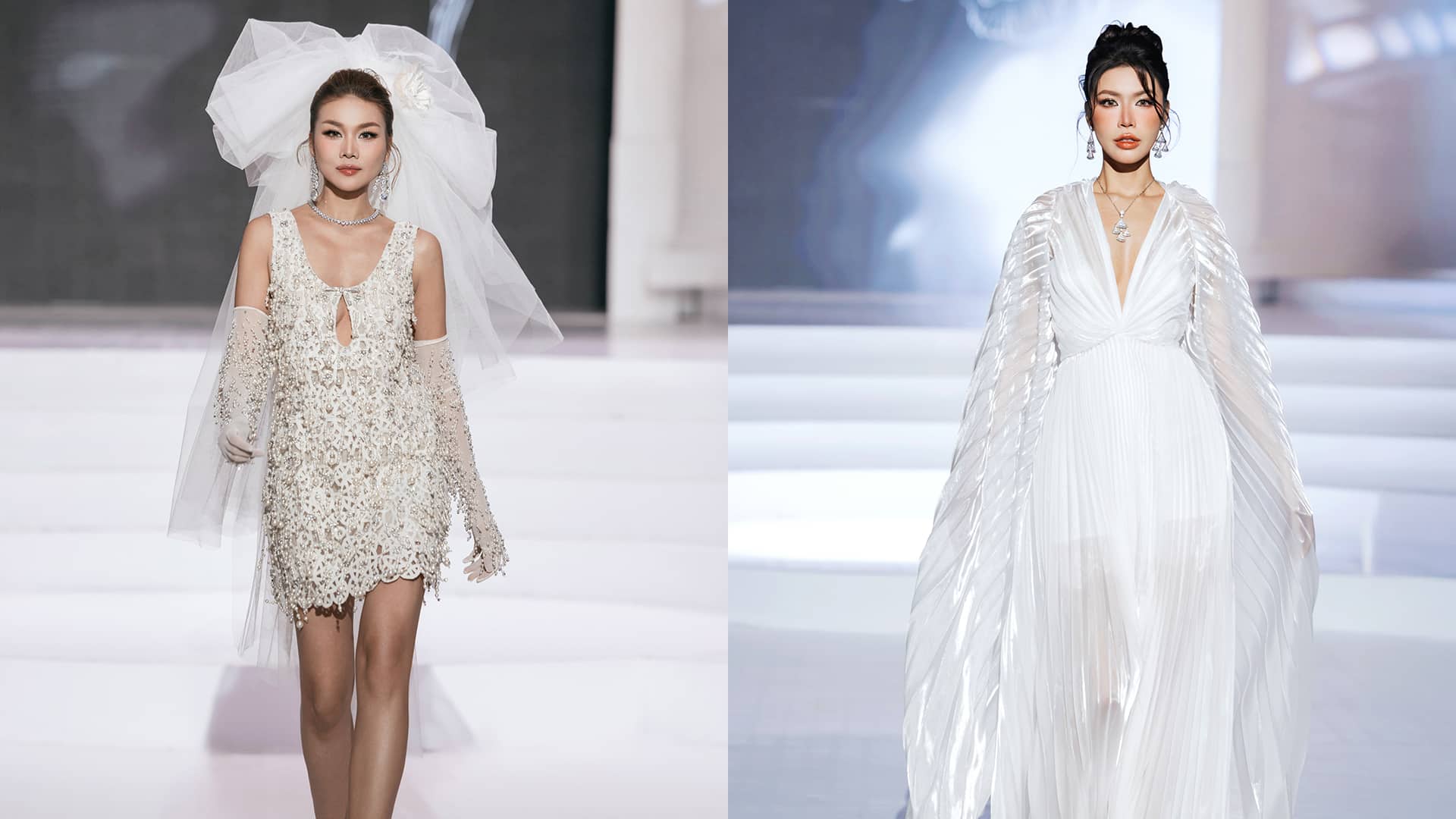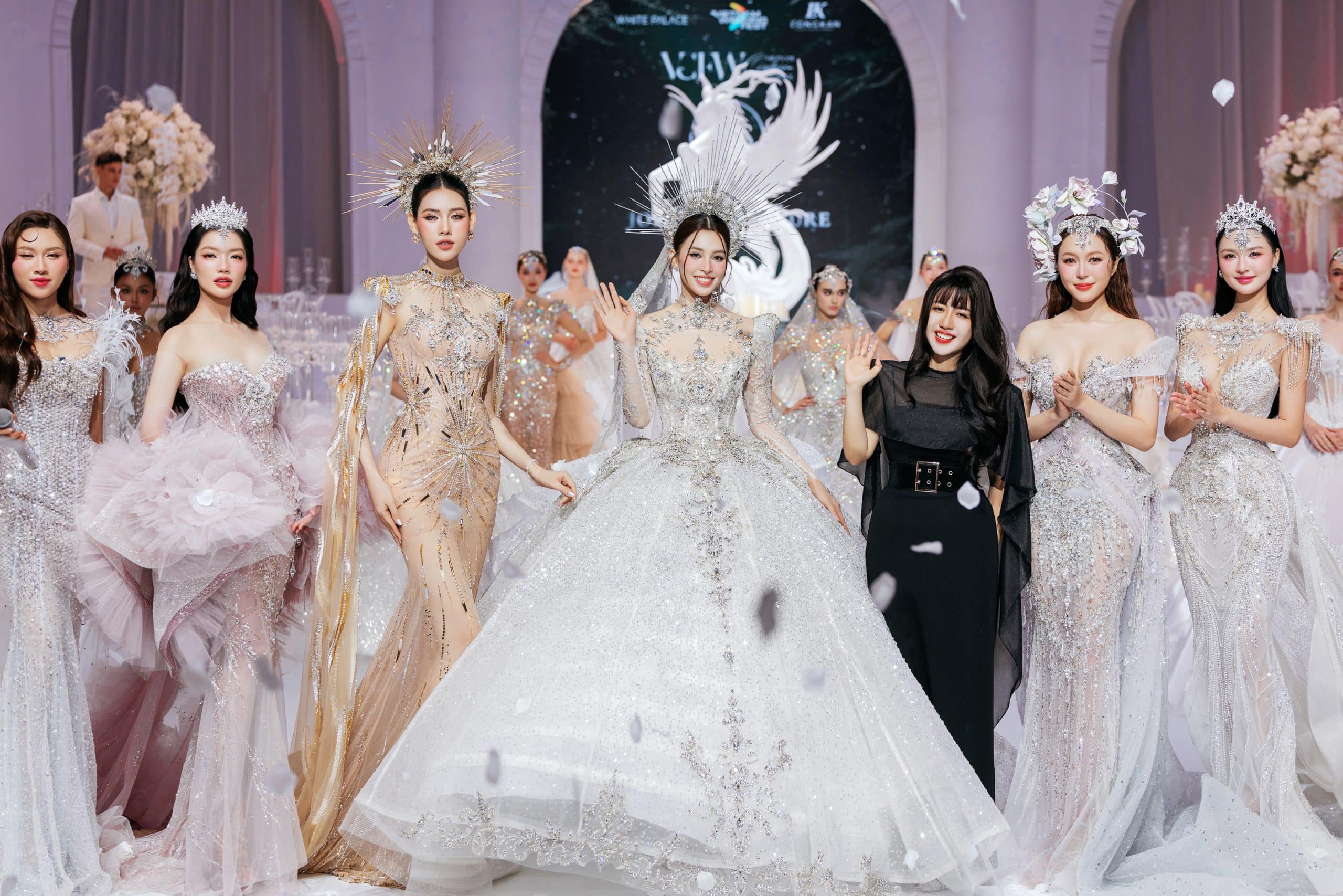 Ba bộ sưu tập nổi bật đã để lại dấu ấn sâu sắc. “Rosalia” của Thụy Bridal tôn vinh vẻ đẹp thanh khiết của cô dâu với 32 thiết kế lụa satin, voan kết hợp kỹ thuật gấp, xếp ly tinh xảo. Hoa hậu Xuân Hạnh và Lê Hoàng Phương đã xuất sắc thể hiện thông điệp “Tỏa sáng theo cách của riêng bạn”.