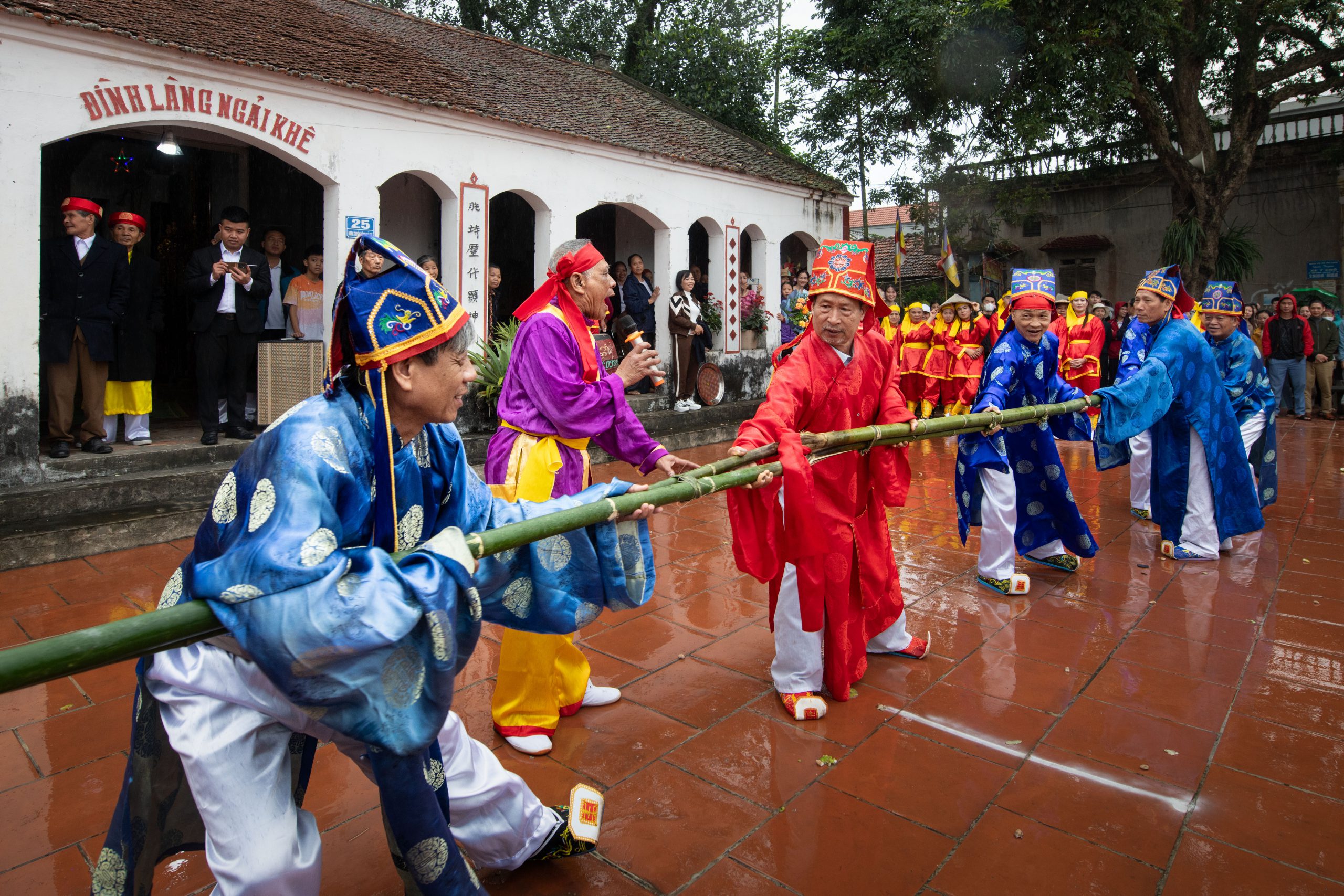 Ở mỗi địa phương, nghi lễ và trò chơi kéo co lại mang nét độc đáo và có khi cả tên gọi khác biệt như kéo song, kéo mây, kéo mỏ… Sở dĩ có tên gọi như vật là do vật liệu để các đội kéo là từ các loại cây song, cây mây hay cây tre được hơ lửa uốn cong tạo thành mỏ ngoắc 2 đầu vào nhau cho 2 đội thi kéo. Về Vĩnh Phúc ngày xuân, hội kéo song diễn ra nhiều nơi như ở thị trấn Hương Canh (huyện Bình Xuyên) hay thôn Hòa Loan (xã Lũng Hòa, huyện Vĩnh Tường) với dây kéo chính là sợi song dài để đủ chỗ bám tay cho cả vài chục người trong 2 đội chơi.