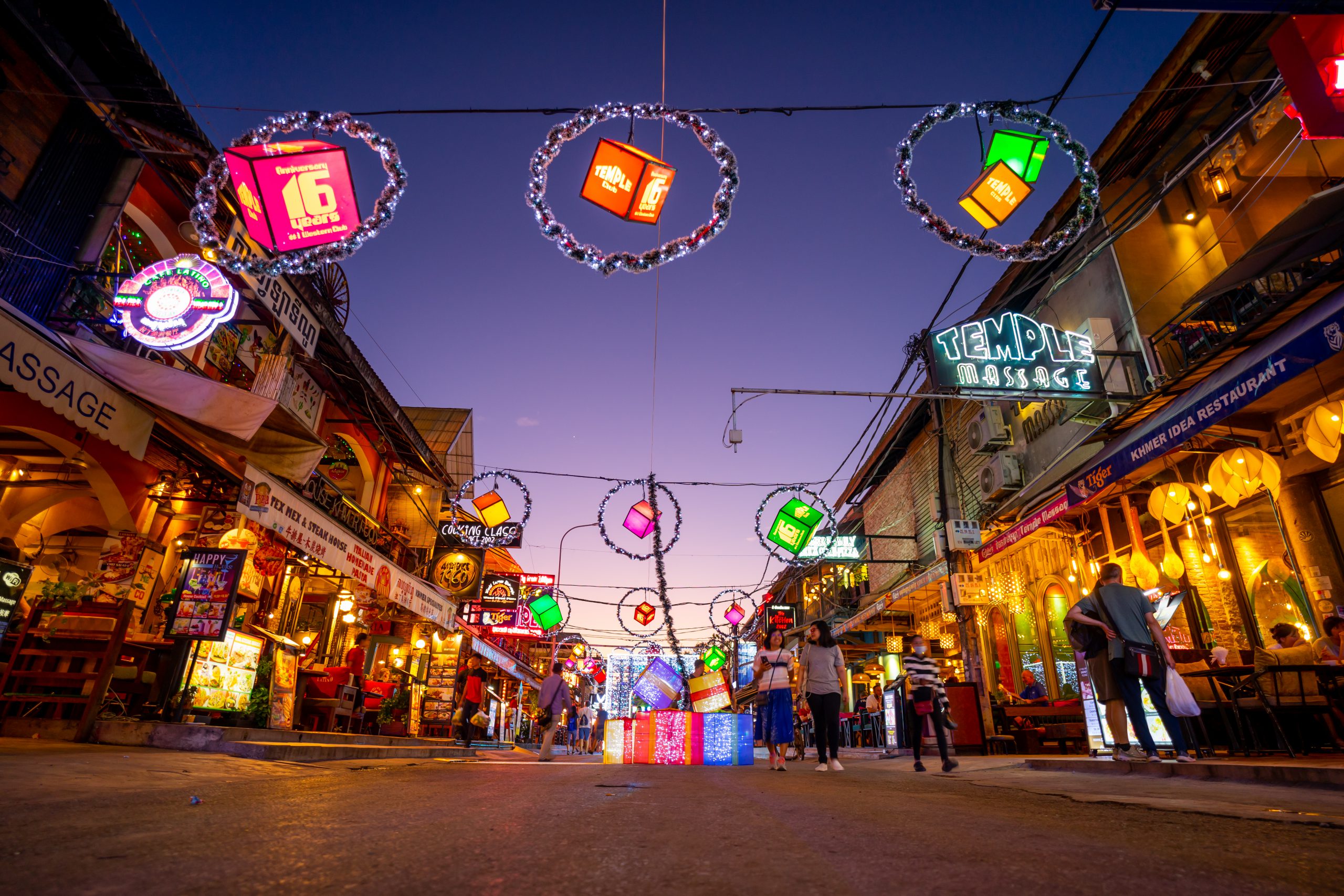 Cũng đừng quên bỏ qua không khí tưng bừng trên con đường chính của cố đô Luang Prabang ở Lào. Với đại đa số người dân theo Phật giáo, ở đây không có đêm rước lễ trang nghiêm, không có tiếng chuông nhà thờ nhưng vẫn hội tụ hương sắc Noel qua cách bài trí của hàng trăm nhà hàng dọc con đường chính chạy trước Royal Palace.