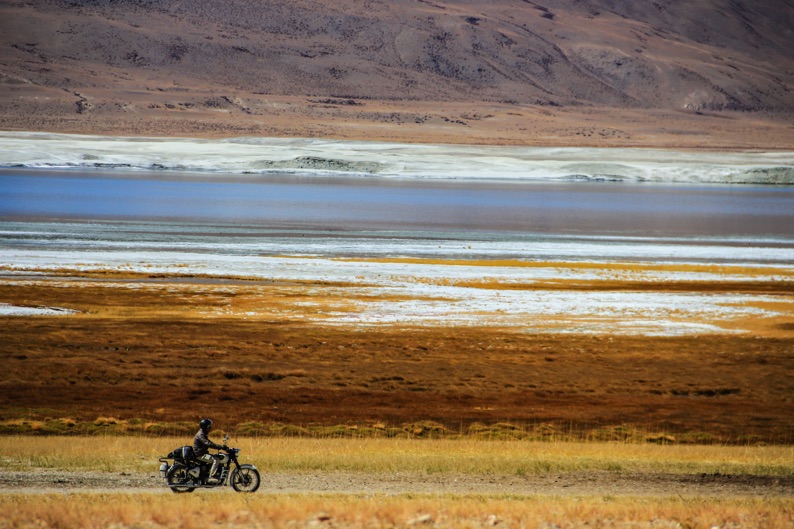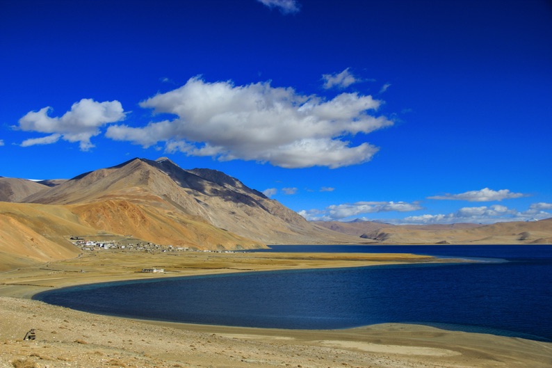 Nếu như Pangong nhộn nhịp, đông khách du lịch thì hồ Tso Moriri lại nằm bình yên dưới những rặng núi. Tso Moriri là hồ nước lợ lớn nhất Ấn Độ ở độ cao 4.500m và dài khoảng 120km. Du khách chỉ có thể tới được hồ từ tháng 4 tới tháng 10 do 6 tháng còn lại trong năm đường vào hồ sẽ bị đóng băng không thể đi được. Tôi đã tự hỏi sao nước hồ Tso Moriri xanh thẳm đến vậy, nó giống hệt màu của hộp mực tàu khi tôi còn học tiểu học. Làn nước xanh ngắt phản chiếu những ngọn núi phủ tuyết xung quanh và ngôi làng du mục Korzok với những người dân chất phác và mến khách. Không có Wi-Fi, thậm chí còn không có sóng điện thoại, các nhà nghỉ chỉ ở mức đơn sơ tối thiểu, tôi đã rời xa thế giới hiện đại và náo nhiệt để yên lặng ôm trọn thiên nhiên bao la rộng lớn, núi non hùng vĩ và hồ xanh đến mê mải. Hoạt động yêu thích nhất của tôi trong những ngày ở Tso Moriri là buổi sáng sớm đi bộ xung quanh mọi ngõ ngách ở làng Korzok, ngắm nhìn cuộc sống bình dị, cảm nhận một nền văn hóa khác biệt. Có những lúc tôi lại chạy ào ra hồ chơi đùa cùng với đàn cừu đang lững thững gặm cỏ, hay nằm lăn ra cánh đồng cùng ngắm trời đất, núi tuyết và hồ xanh, lắng nghe gió thổi qua tai. Một cảm giác bình yên và thư giãn tuyệt đối.