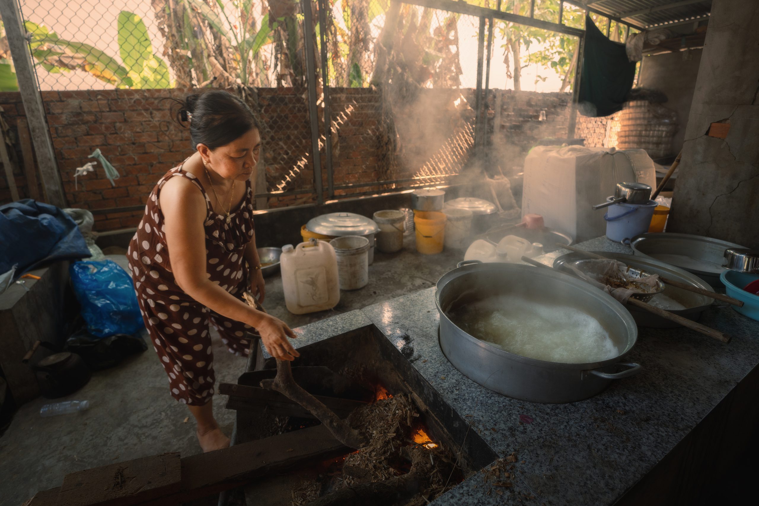 Nước thốt nốt được người dân nấu thành đường hoàn toàn bằng phương pháp thủ công với chiếc chảo gang đặt trên lò đất đỏ lửa. 10 lít nước thốt nốt sẽ được nấu trong vài giờ để tạo ra 1kg đường ngọt thanh tự nhiên, không sử dụng phụ gia. Quá trình nấu khuấy liên tục đến khi đường cô đặc, có màu vàng đặc trưng là đạt yêu cầu và đem ra lò ngay để tránh bị cháy khét, đổ vào khuôn hình trụ, sau đó trút ra cắt khoanh và dùng lá thốt nốt gói bên ngoài như bánh tét.