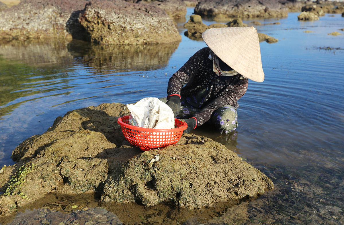 Dưới cái nắng như rang, gió như phang của miền Trung, người cào rong bám chặt chân đá, tìm những bụi rong câu già rồi cặm cụi cào chúng ra khỏi nền đá cứng chắc. Nghề bám ghềnh đá cào rong câu là nghề mùa vụ, mang lại thu nhập cho người dân miền biển. Khi được hỏi nghề này có cực nhọc không, người cào rong chỉ cười hiền nói rằng biển cả đã cho mình vốn liếng thì phần mình là bù đắp bằng siêng năng.