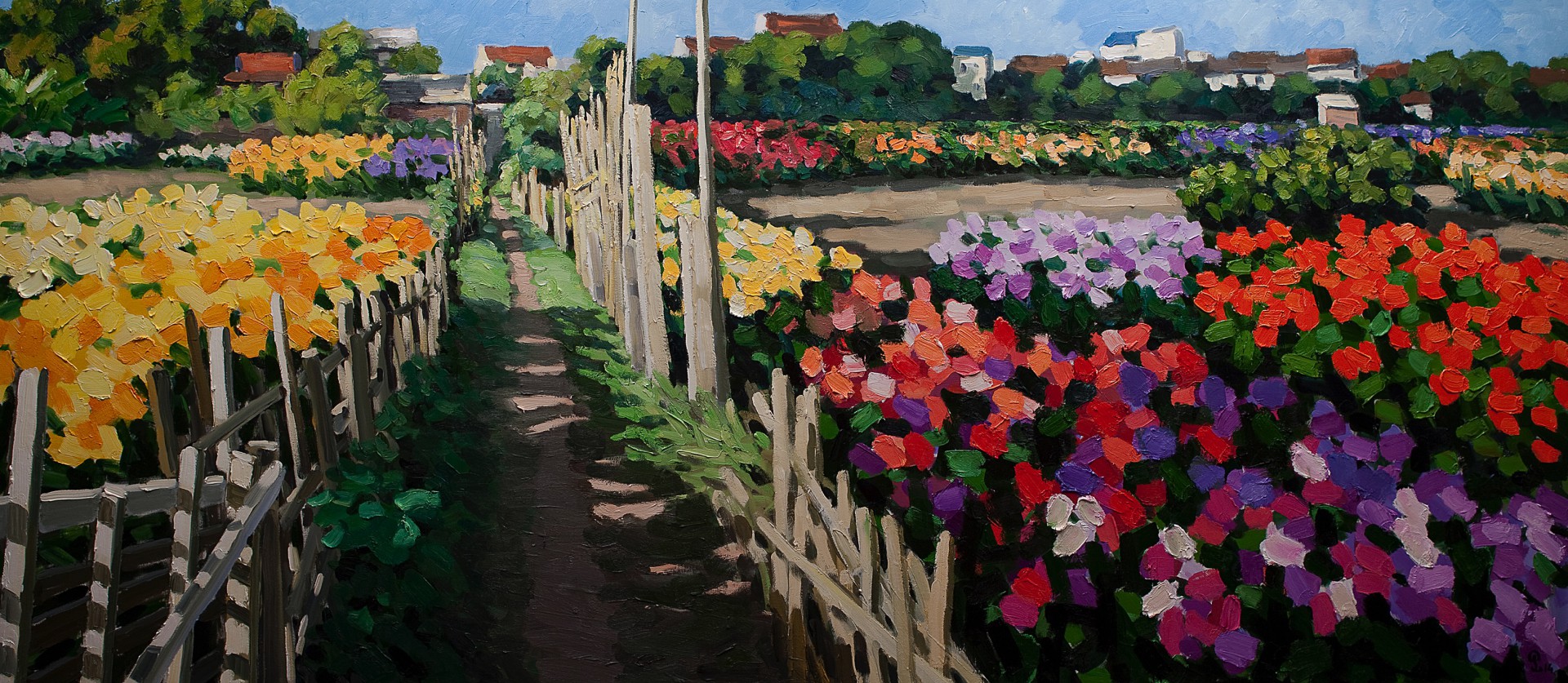 Với hội họa, mùa xuân hiện lên với muôn sắc màu rực rỡ. Từ các tác phẩm kinh điển của các họa sĩ Đông Dương đến các sáng tác hiện đại của các họa sĩ trẻ ngày nay, mùa xuân luôn lấp lánh và tràn đầy sinh lực. Nổi tiếng nhất chắc chắn phải kể đến tuyệt phẩm “Vườn xuân Trung Nam Bắc” của danh họa Nguyễn Gia Trí. Bức tranh mô tả các thiếu nữ trong trang phục truyền thống từng vùng tươi vui, ca hát thể hiện sức sống tươi mới giữa mùa xuân trong một khung cảnh thiên nhiên rộng lớn. Được sáng tác ròng rã trong suốt 20 năm (1969-1989), bức tranh được coi là tác phẩm tinh túy nhất của danh họa bậc thầy này, bởi ông đã gửi gắm mọi thành tựu trong quá trình nghiên cứu, tìm tòi, tích lũy về sơn mài của mình. Tác phẩm này là một trong số những bức tranh tiêu biểu của nền mỹ thuật Việt Nam được công nhận là Bảo vật quốc gia. Một tác phẩm nổi tiếng khác là bức “Hội chợ hoa” của Bùi Xuân Phái, với hình tượng các thiếu nữ Hà thành tươi tắn trong sắc xuân. Trong mỹ thuật đương đại ngày nay, mùa xuân trong các sáng tác là hình ảnh của hoa đào đằm thắm trong tranh của Nguyễn Hữu Khoa, là cánh đồng hoa của họa sĩ Phạm Luận… Cứ vào dịp năm mới, các triển lãm tranh xuân cũng thường được tổ chức, để người xem có dịp chiêm ngưỡng muôn ngàn sắc xuân tươi mới.